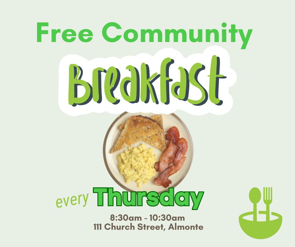 Come out and enjoy a FREE breakfast every Thursday morning at 111 Church Street in Almonte.
