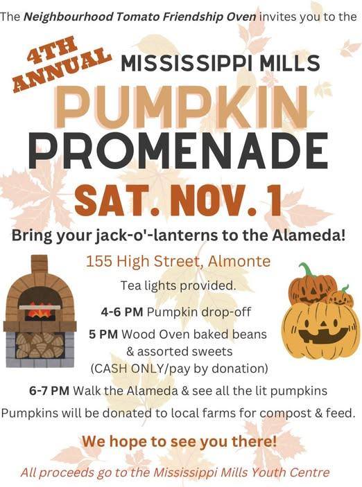 The Neighbourhood Tomato Friendship Oven invites the entire community to the 4th Annual Mississippi Mills Pumpkin Promenade!