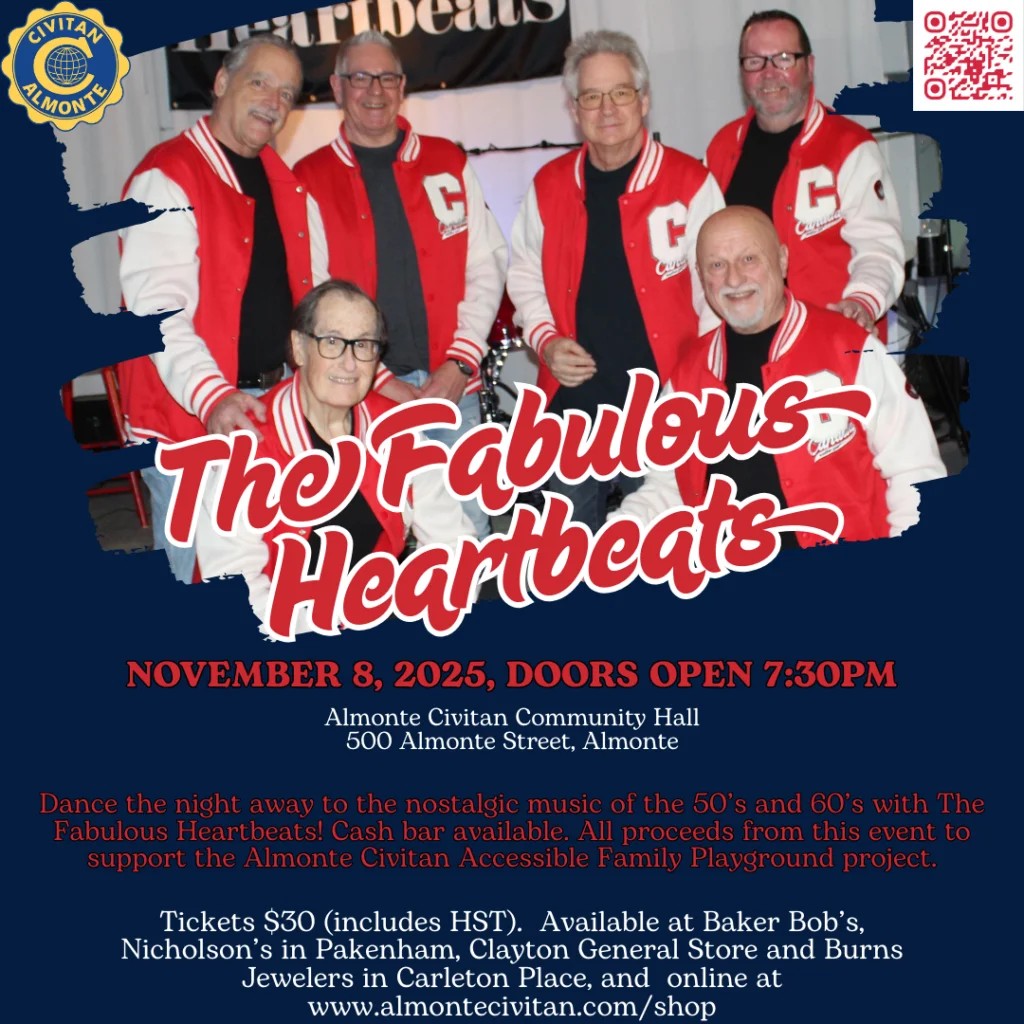 Join us at the Almonte Civitan Community Hall for a night of music, dancing and fun with The Fabulous Heartbeats!
