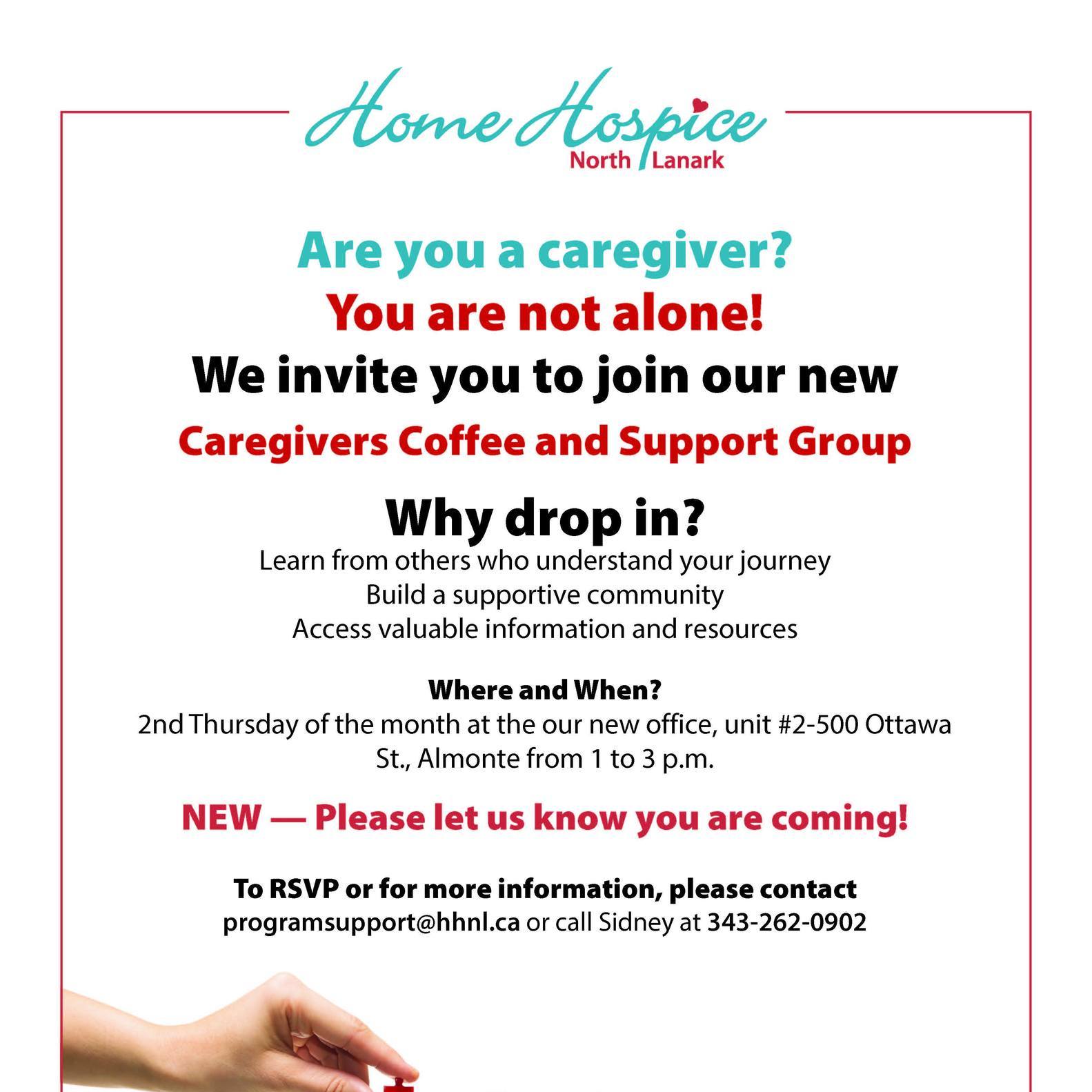 Home Hospice North Lanark offers a Caregivers Support Group on the second Thursday of each month, from 1-3 pm (Unit #2, 500 Ottawa Street).