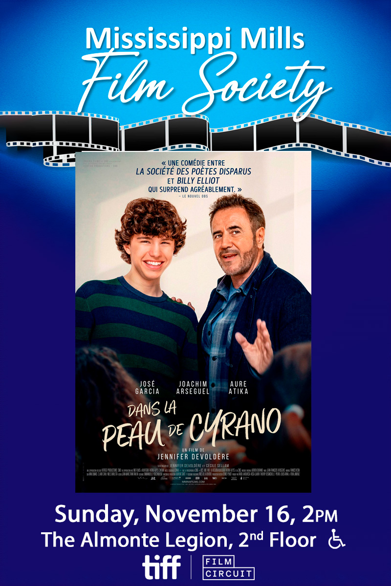 Join the Mississippi Mills Film Society for their next film screening on Sunday, November 16 at the Almonte Legion (100 Bridge Street). The screening of Being Cyrano (Dans La Peau de Cyrano), begins at 2 p.m.